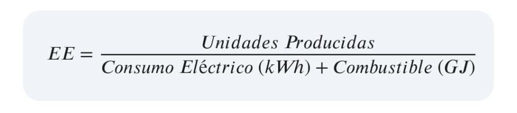 Podemos modelar la Eficiencia Energética ($EE$) mediante la siguiente relación: