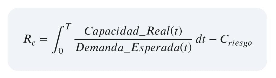 Para validar una decisión, el gemelo digital utiliza algoritmos de optimización estocástica. El objetivo es maximizar la Robustez de la Cadena ($R_c$):