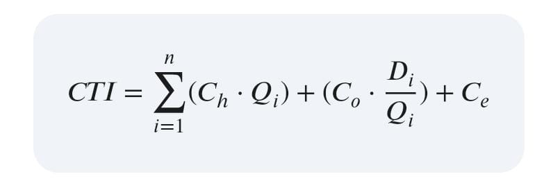 En un almacén inteligente, el costo total de inventario (CTI) se puede modelar mediante la siguiente ecuación, donde buscamos minimizar las variables de error y almacenamiento: